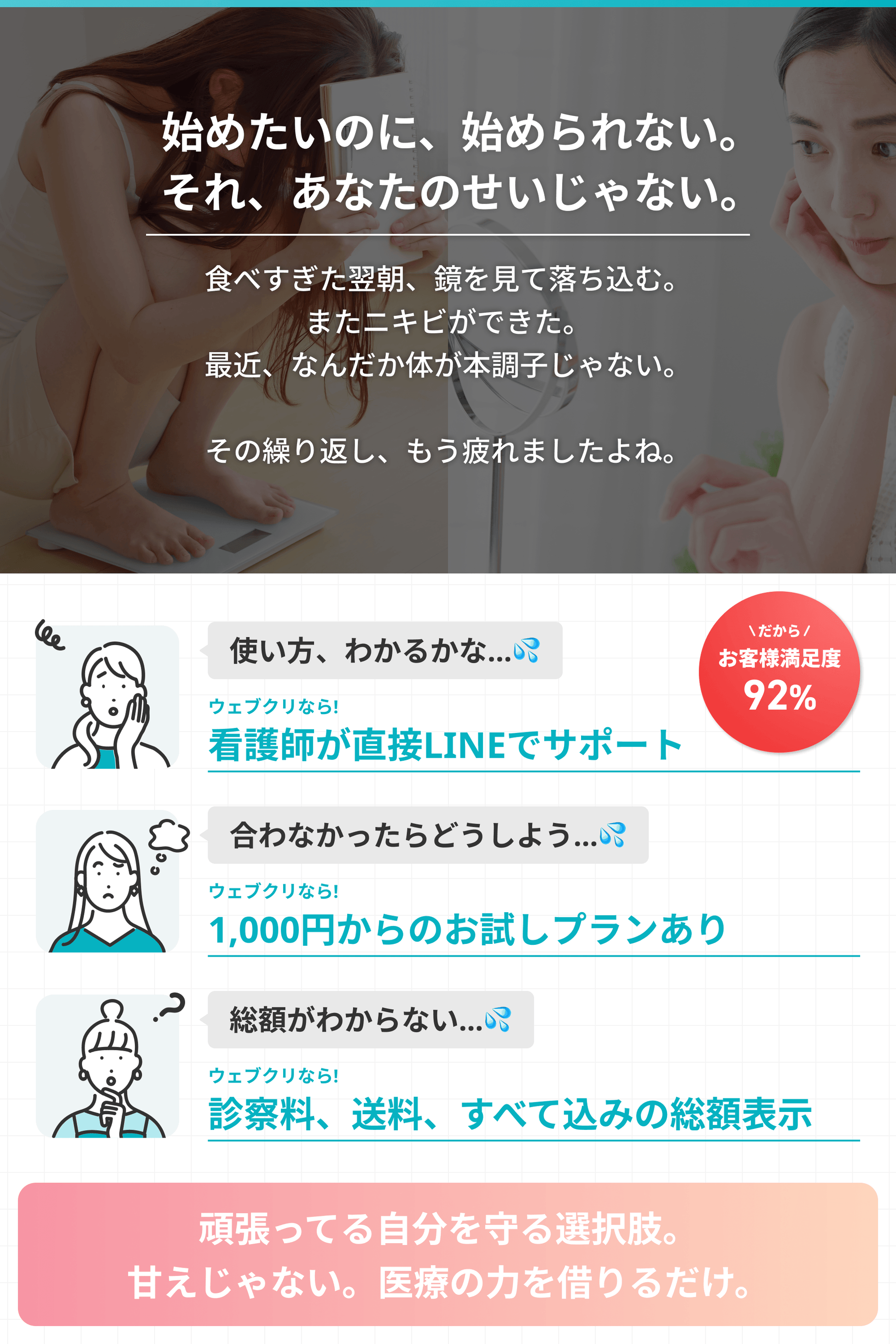※当院は「お薬の選択 → 住所入力 → 医師の診察 → お支払い」の順です。 医師の判断により処方が見送られた場合、費用は一切かかりません